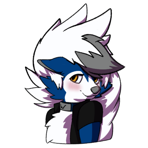 This cute lycanroc has blushed over a nice gift she received from another blue doggo.