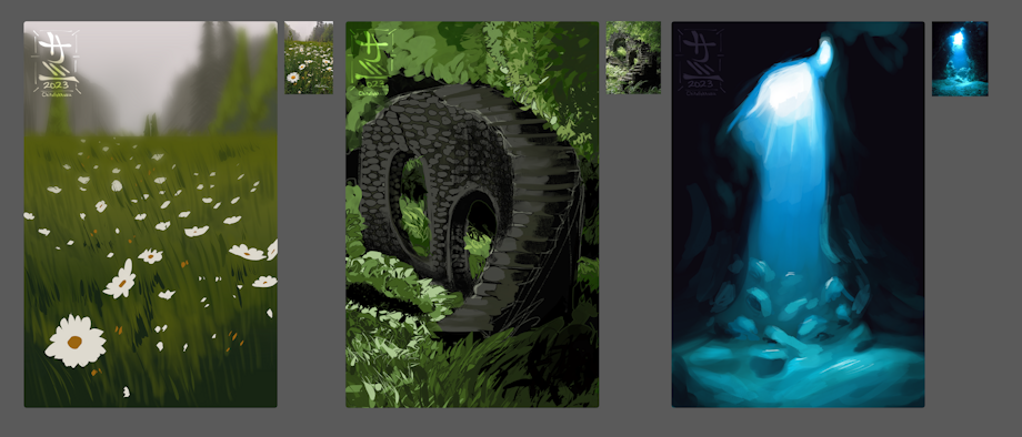 in my attempt to make backgrounds less scary every now and then I'm doing some quick background studies I tried to keep them within an hour to not over think them. I'm going to continue practicing until I get better with my backgrounds. Reference photos found on Pintrest.