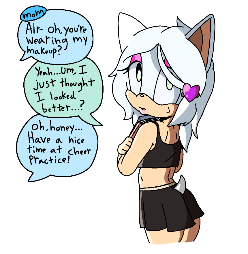 After the thing between rouge and her daddy, shes been wearing makeup ever since for more attention from her dad~ but he feels pretty guilty and heavily ashamed... i didnt draw her wings, i wanted more attention to her curvy body
