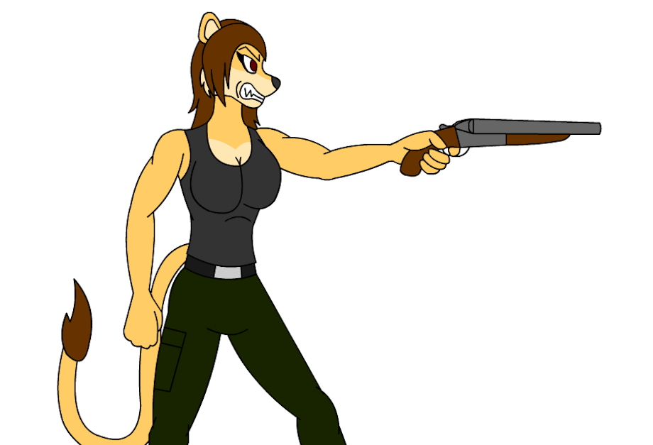 Angry Lioness With Super Shotgun XD