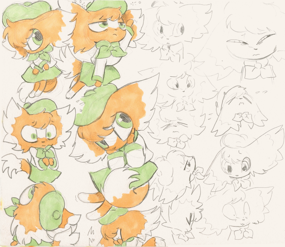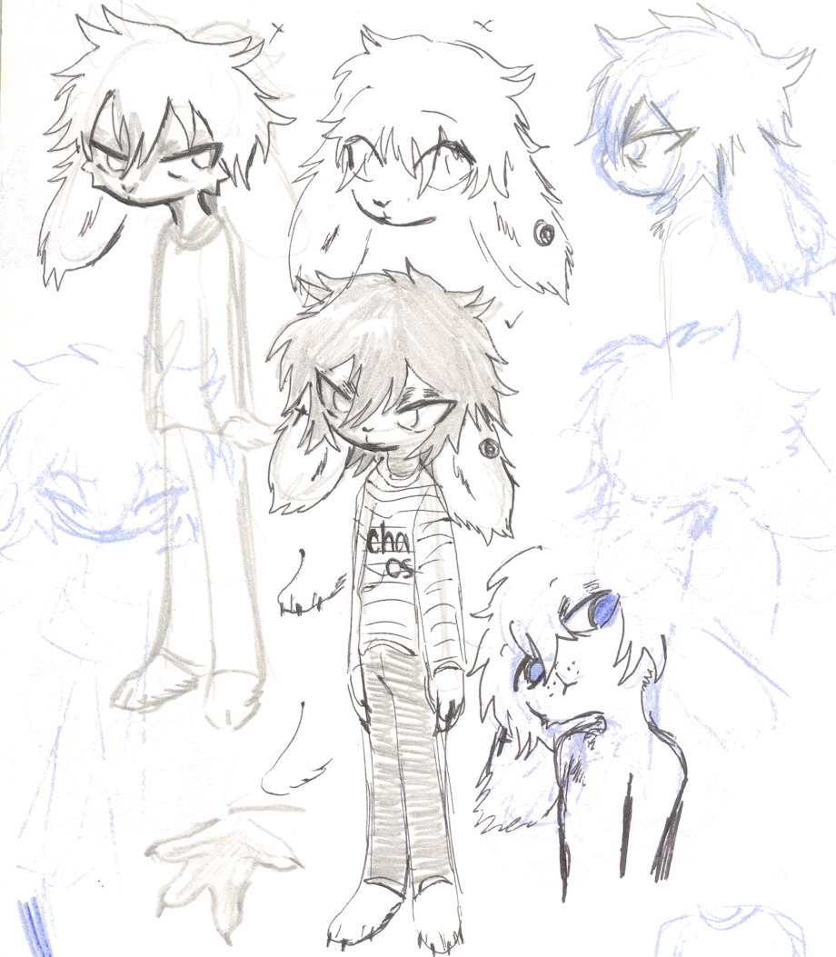 another mini traditional comm, featuring an edgy bun boy. he has some soft sides, though... included are some warm sketches ^^
