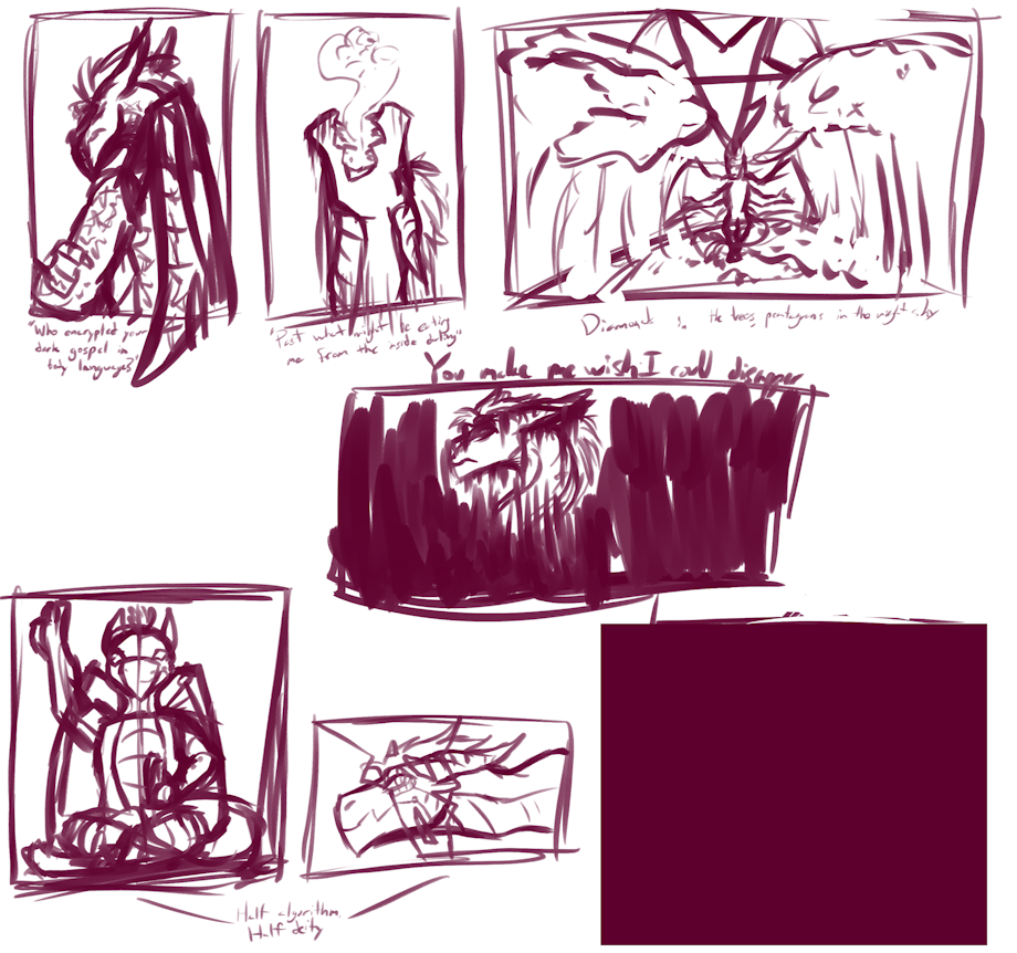 This is a sketch page I made with very quick thumbnails based only on Ascensionism by Sleep Token!