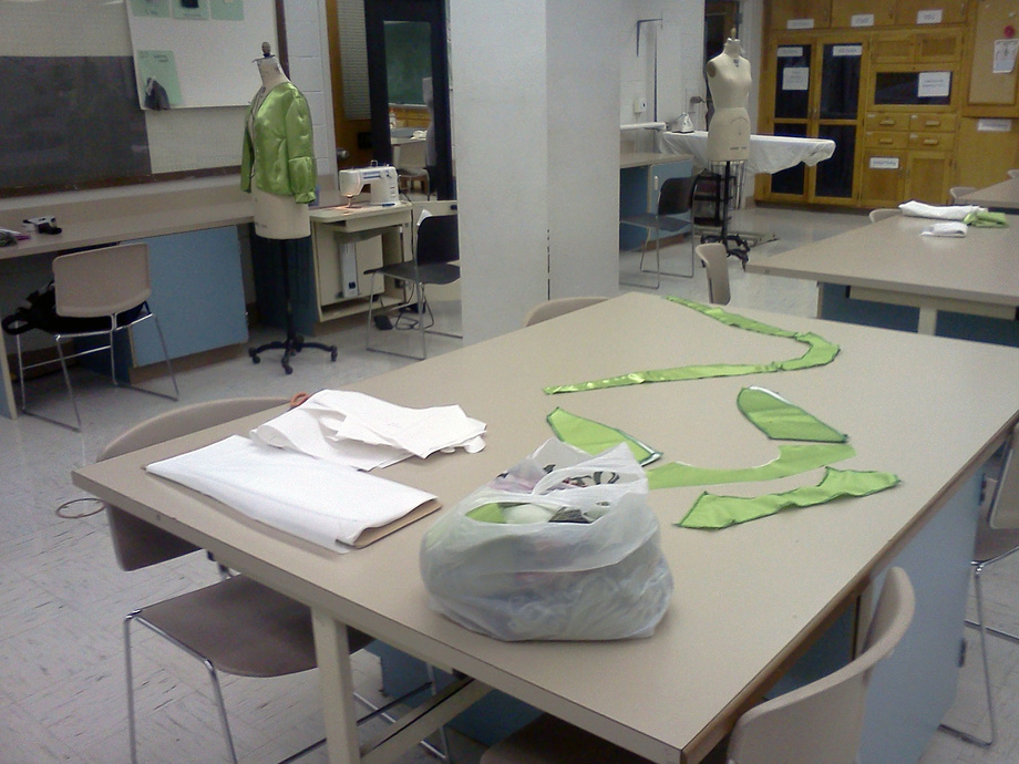 going to be furring the whole collar and trim all the way down as well as the hem, there is a lanturn sleeve at the end with a minor ruffle for the cuff, 6 layers of interfacing total for the lapel area, faced and serged without lining. Size 10.