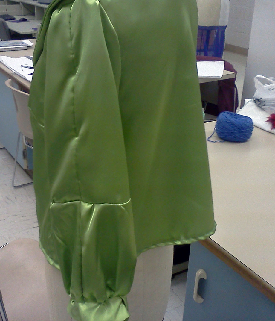 going to be furring the whole collar and trim all the way down as well as the hem, there is a lanturn sleeve at the end with a minor ruffle for the cuff, 6 layers of interfacing total for the lapel area, faced and serged without lining. Size 10.