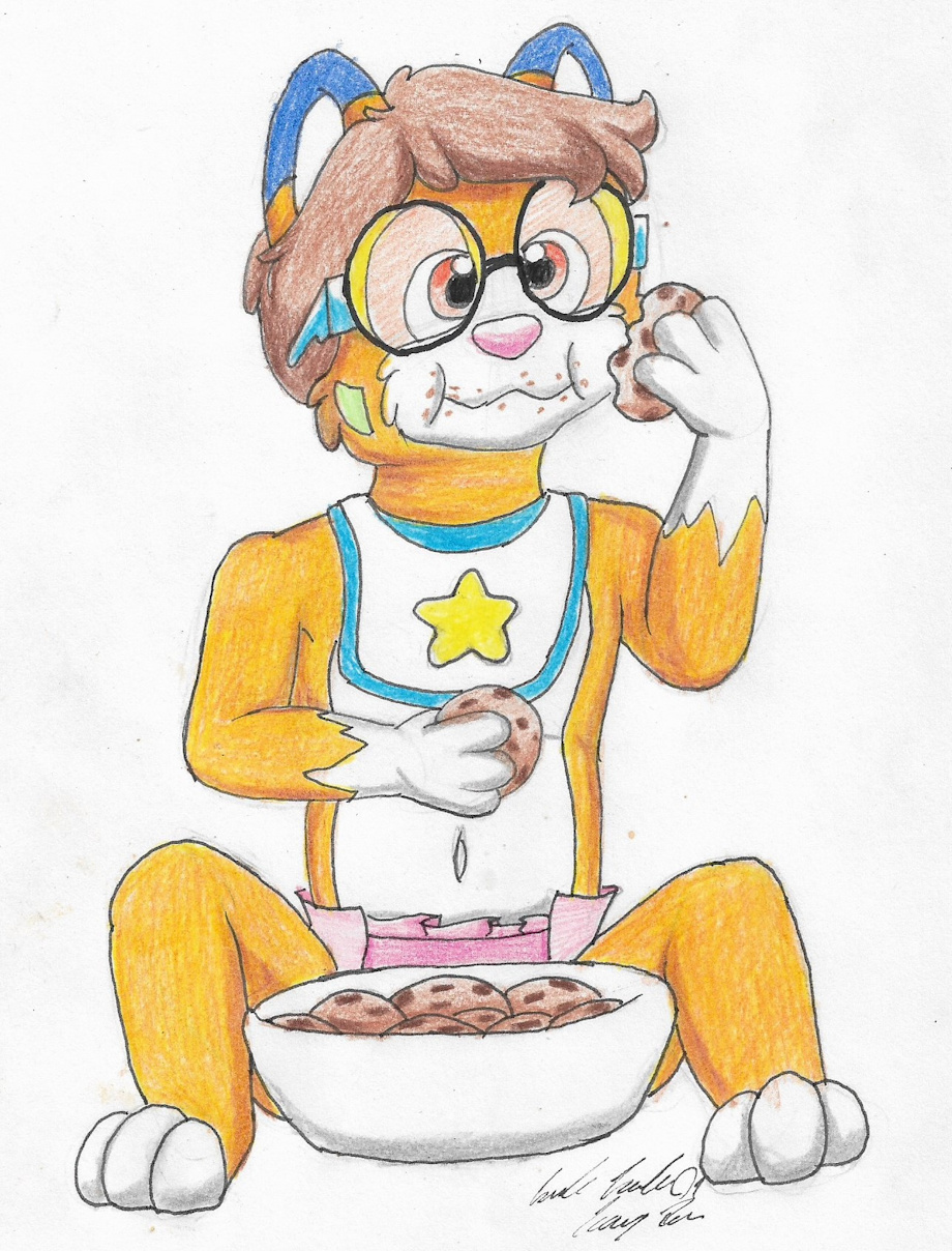 Puppy Snowy eating cookies and I don´t how he got the cookies nor I don´t know who gives them to him.