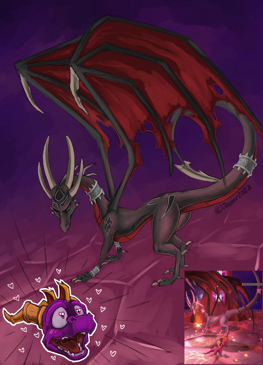 Anyway, this won't stop me from drawing what I enjoy. So, have my newest fun drawing I did two days ago! Spyro clearly understanding what's going on here ;p TLoS game devs clearly nailed it with Cynders design ;>