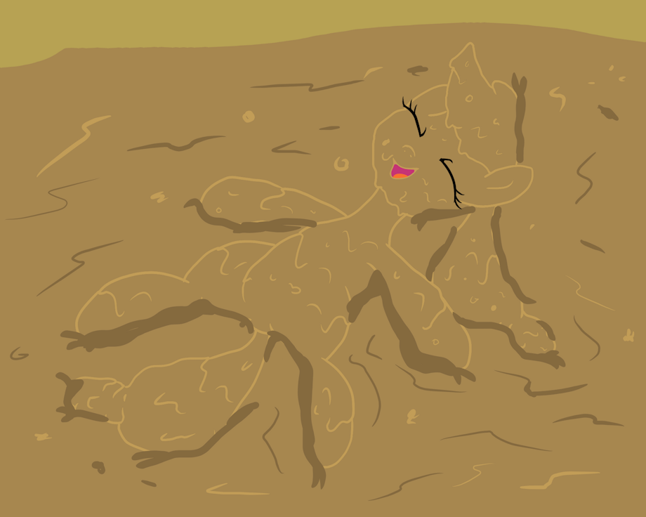 Applejack is making a mud pony out of herself. She really enjoys and having fun in the mud by wallowing and rolling all around all day long.
