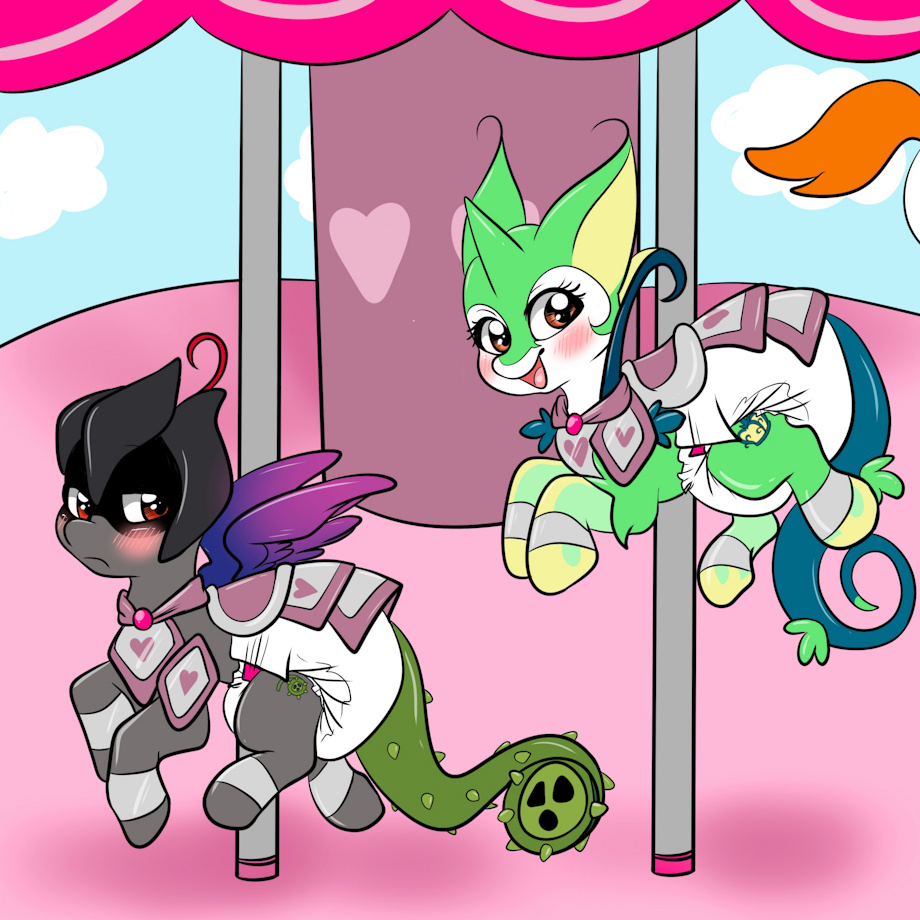 With the summer season in swing, it's always a good idea to go on the funfair and have a ride on a carousels. The old carousels are a bit old now, so some ponies volunteer time as the ponies you can ride. Thanks to Babysteps over on FA for taking this idea on.
