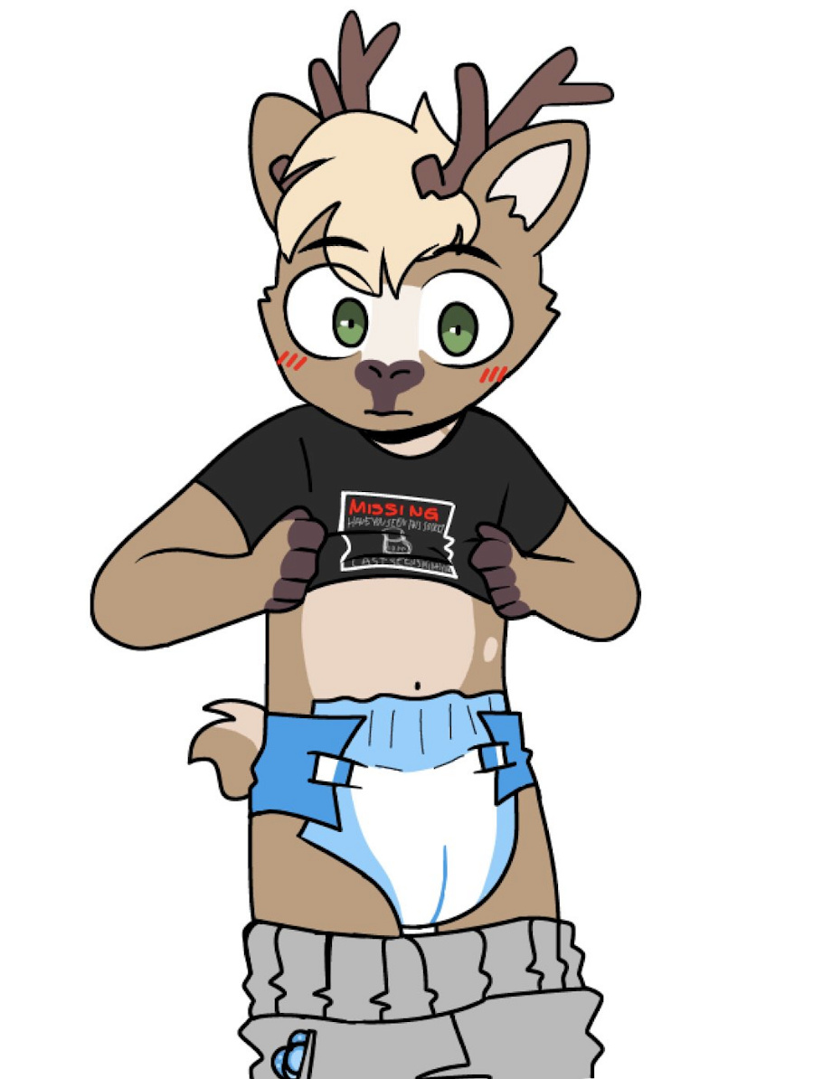 Y'all ever hear of Deer in Headlights? Well, how about Deer in the Bathroom getting Caught by the Other Boys in a Clean Diaper? It's not my fault that I need these stupid things! It was that evil hooman with that loud hurting thing that hit my tummy. I promise I'm still a big buck!