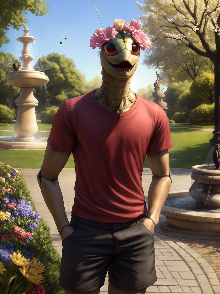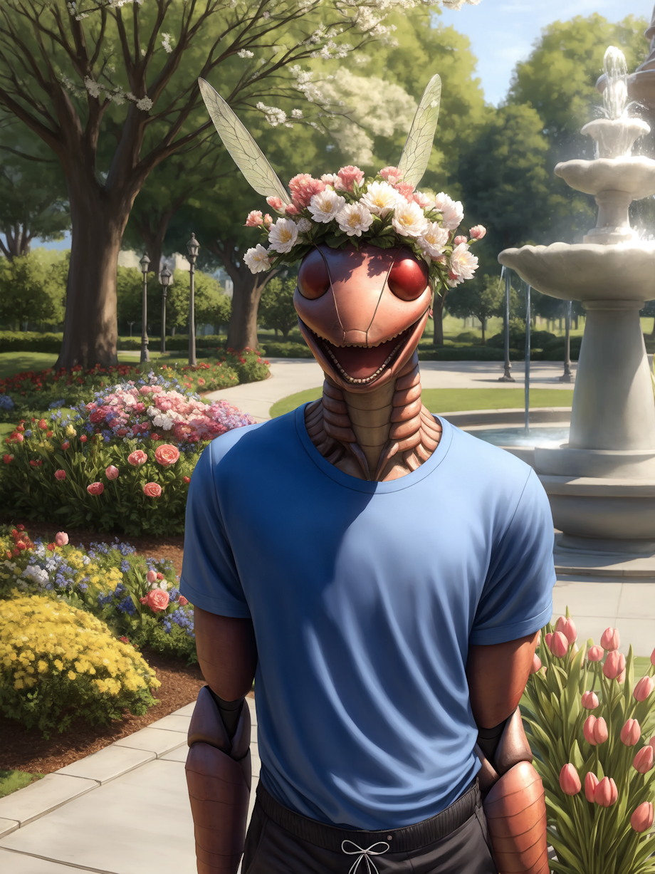 AI Generated with Stable Diffusion in Automatic1111 Positive (Fall): male (bug fly, insect, arthropod, dipteran:1.2), anthro, fully clothed, scarf, beanie, open mouth smiling, (bug eyes:0.5), (red eyes:0.7), handsome, (cute:0.3), public park, trees, fountain, sidewalk, autumn, full body view, closeup, looking at viewer masterpiece, high quality, realistic, detailed background, Seeds: 2, 7 Positive (Spring): male (bug fly, insect, arthropod, dipteran:1.2), anthro, fully clothed, t-shirt, shorts, open mouth smiling, (bug eyes:0.5), (red eyes:0.7), handsome, (cute:0.3), public park, trees, fountain, sidewalk, spring, (flowers:1.1), full body view, closeup, looking at viewer, masterpiece, high quality, realistic, detailed background, Seeds: 51, 5 Positive (Winter): male (bug fly, insect, arthropod, dipteran:1.2), anthro, fully clothed, scarf, beanie, open mouth smiling, (bug eyes:0.5), (red eyes:0.7), handsome, (cute:0.3), public park, trees, fountain, sidewalk, winter, full body view, closeup, looking at viewer, masterpiece, high quality, realistic, detailed background, Seeds: 6, 2 Positive (Summer): male (bug fly, insect, arthropod, dipteran:1.2), anthro, fully clothed, t-shirt, shorts, open mouth smiling, (bug eyes:0.5), (red eyes:0.7), handsome, (cute:0.3), public park, trees, fountain, sidewalk, summer full body view, closeup, looking at viewer, masterpiece, high quality, realistic, detailed background, Seeds: 7, 22 Negative prompt (all): boring_e621_fluffyrock_v4, ubbp, updn, dfc, bwu, EasyNegativeV2, furry, glasses Model: domesticatedMix_v13 Steps: 30, Sampler: Euler a, CFG scale: 7, Size: 600x800, Model hash: 8f73e38cb3, , Denoising strength: 0.4, Hires resize: 0x2048, Hires upscaler: R-ESRGAN 4x+, Version: v1.4.0-2-g8d0078b6 |