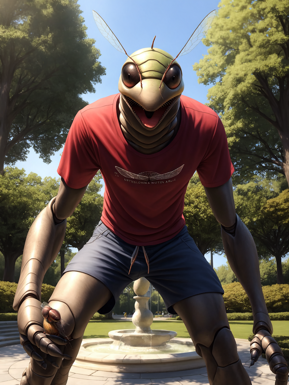 AI Generated with Stable Diffusion in Automatic1111 Positive (Fall): male (bug fly, insect, arthropod, dipteran:1.2), anthro, fully clothed, scarf, beanie, open mouth smiling, (bug eyes:0.5), (red eyes:0.7), handsome, (cute:0.3), public park, trees, fountain, sidewalk, autumn, full body view, closeup, looking at viewer masterpiece, high quality, realistic, detailed background, Seeds: 2, 7 Positive (Spring): male (bug fly, insect, arthropod, dipteran:1.2), anthro, fully clothed, t-shirt, shorts, open mouth smiling, (bug eyes:0.5), (red eyes:0.7), handsome, (cute:0.3), public park, trees, fountain, sidewalk, spring, (flowers:1.1), full body view, closeup, looking at viewer, masterpiece, high quality, realistic, detailed background, Seeds: 51, 5 Positive (Winter): male (bug fly, insect, arthropod, dipteran:1.2), anthro, fully clothed, scarf, beanie, open mouth smiling, (bug eyes:0.5), (red eyes:0.7), handsome, (cute:0.3), public park, trees, fountain, sidewalk, winter, full body view, closeup, looking at viewer, masterpiece, high quality, realistic, detailed background, Seeds: 6, 2 Positive (Summer): male (bug fly, insect, arthropod, dipteran:1.2), anthro, fully clothed, t-shirt, shorts, open mouth smiling, (bug eyes:0.5), (red eyes:0.7), handsome, (cute:0.3), public park, trees, fountain, sidewalk, summer full body view, closeup, looking at viewer, masterpiece, high quality, realistic, detailed background, Seeds: 7, 22 Negative prompt (all): boring_e621_fluffyrock_v4, ubbp, updn, dfc, bwu, EasyNegativeV2, furry, glasses Model: domesticatedMix_v13 Steps: 30, Sampler: Euler a, CFG scale: 7, Size: 600x800, Model hash: 8f73e38cb3, , Denoising strength: 0.4, Hires resize: 0x2048, Hires upscaler: R-ESRGAN 4x+, Version: v1.4.0-2-g8d0078b6 |