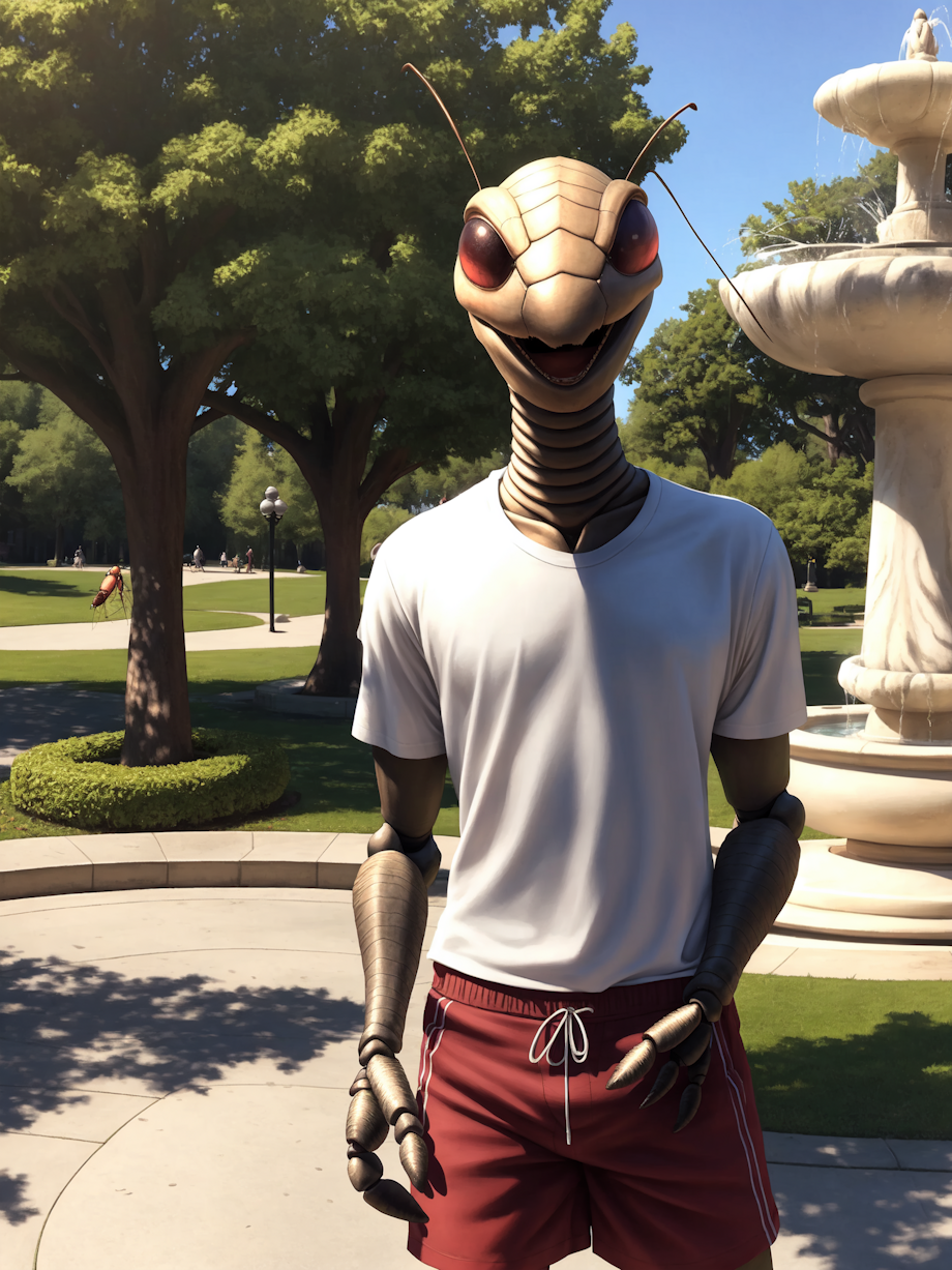AI Generated with Stable Diffusion in Automatic1111 Positive (Fall): male (bug fly, insect, arthropod, dipteran:1.2), anthro, fully clothed, scarf, beanie, open mouth smiling, (bug eyes:0.5), (red eyes:0.7), handsome, (cute:0.3), public park, trees, fountain, sidewalk, autumn, full body view, closeup, looking at viewer masterpiece, high quality, realistic, detailed background, Seeds: 2, 7 Positive (Spring): male (bug fly, insect, arthropod, dipteran:1.2), anthro, fully clothed, t-shirt, shorts, open mouth smiling, (bug eyes:0.5), (red eyes:0.7), handsome, (cute:0.3), public park, trees, fountain, sidewalk, spring, (flowers:1.1), full body view, closeup, looking at viewer, masterpiece, high quality, realistic, detailed background, Seeds: 51, 5 Positive (Winter): male (bug fly, insect, arthropod, dipteran:1.2), anthro, fully clothed, scarf, beanie, open mouth smiling, (bug eyes:0.5), (red eyes:0.7), handsome, (cute:0.3), public park, trees, fountain, sidewalk, winter, full body view, closeup, looking at viewer, masterpiece, high quality, realistic, detailed background, Seeds: 6, 2 Positive (Summer): male (bug fly, insect, arthropod, dipteran:1.2), anthro, fully clothed, t-shirt, shorts, open mouth smiling, (bug eyes:0.5), (red eyes:0.7), handsome, (cute:0.3), public park, trees, fountain, sidewalk, summer full body view, closeup, looking at viewer, masterpiece, high quality, realistic, detailed background, Seeds: 7, 22 Negative prompt (all): boring_e621_fluffyrock_v4, ubbp, updn, dfc, bwu, EasyNegativeV2, furry, glasses Model: domesticatedMix_v13 Steps: 30, Sampler: Euler a, CFG scale: 7, Size: 600x800, Model hash: 8f73e38cb3, , Denoising strength: 0.4, Hires resize: 0x2048, Hires upscaler: R-ESRGAN 4x+, Version: v1.4.0-2-g8d0078b6 |