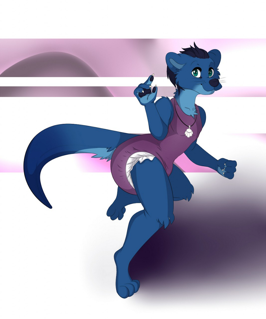 "Come on, gotta make sure you're a big boy like you claimed you were!" Katie commented playfully pulling the otter boy into the changing stall