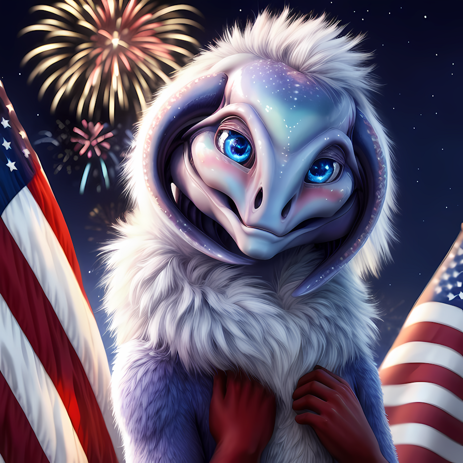 Furry, anthro, (((alien))), patriotic, patriotism, fourth of July, fireworks, American flag, holding American flag,