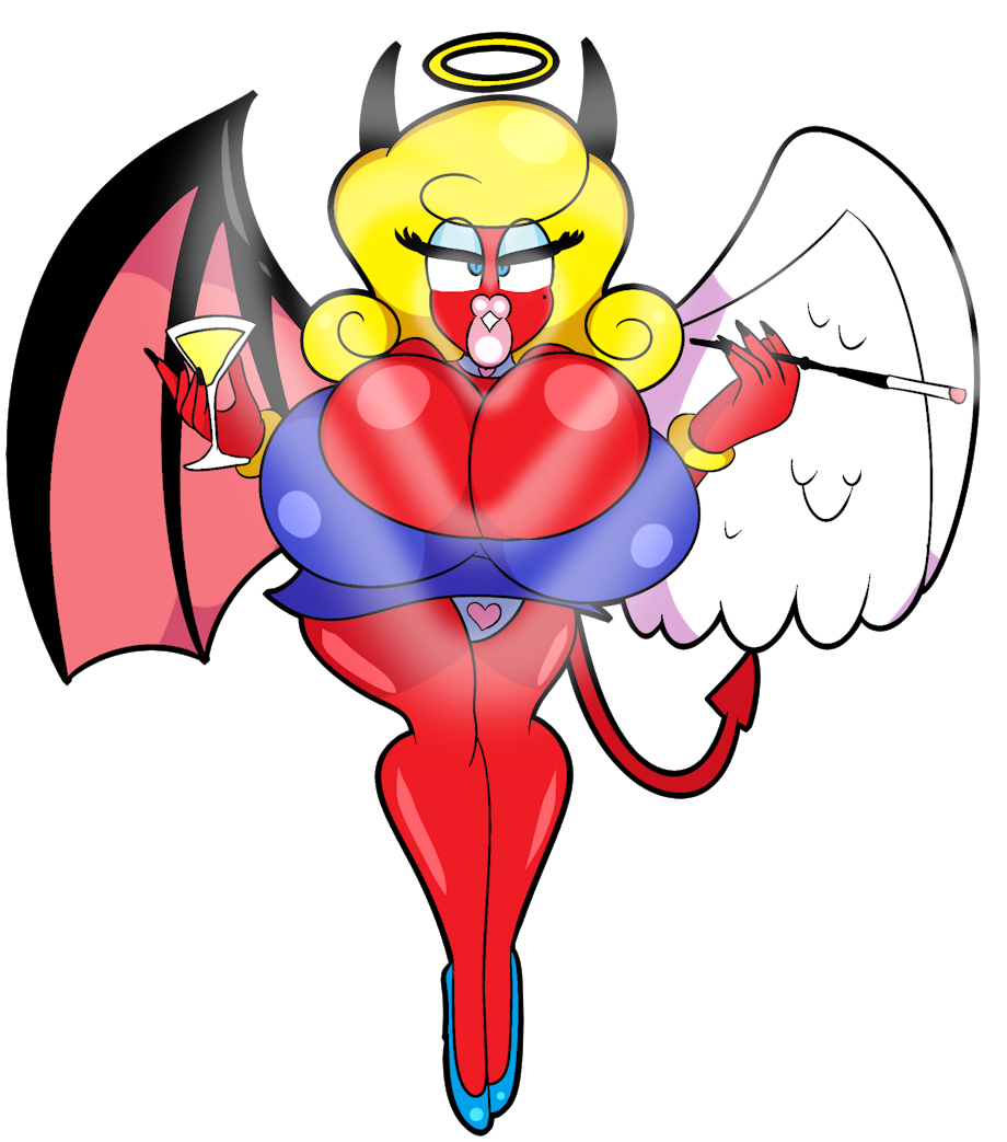 of my Helluva Boss OC Lucy Sulfers blowing us a smoke heart ring.