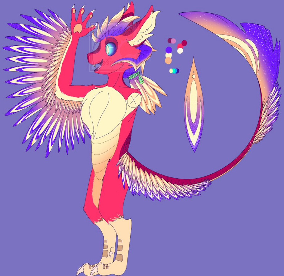 Not gonna lie, picked up my iPad and simply wanted to make some kind of hybrid with an avali because their feather designs and colors are so much fun. Eventually he just turned into a dragon-avali hybrid of some sort with colors that I'm extremely happy with. I think I'll call him Nova for now. I was going to go with "Dust" or "Horizon", but I don't know really. Might change his name later who knows, just want to keep it simple.