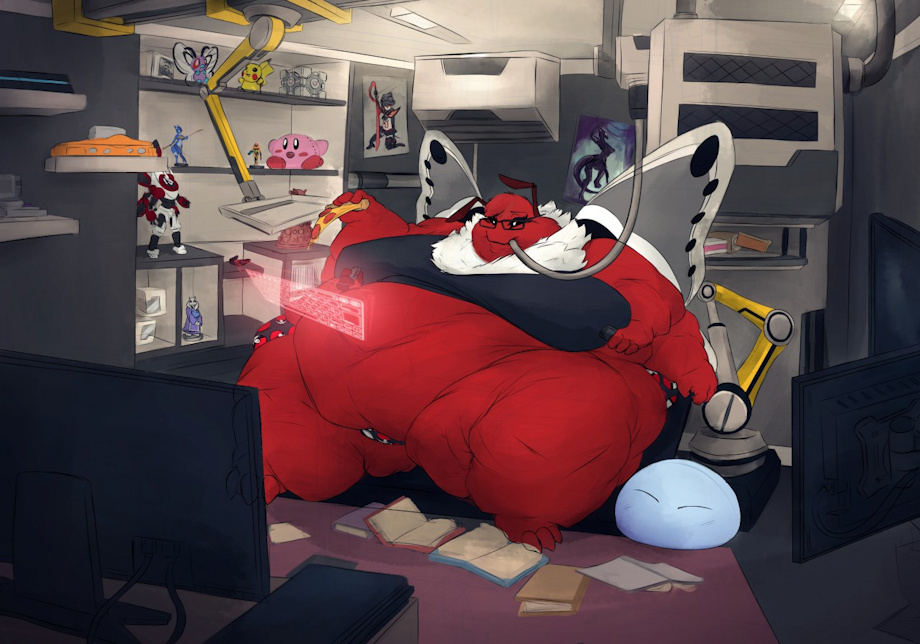 A few years before becoming the Vikki you all know, she had gone through a difficult period, after losing a close friend who accompanied her and her friends on their space adventure and the group dissolved after this tragedy. On her return to earth, she returned to the former laboratory of these deceased parents to make her home there and sank into a deep depression. Having no family, these friends went to each of their corners after the tragedy and not knowing what to do with her life, she spent the majority of these days doing nothing except eating, watching anime and playing video games. This resulted in her gaining enormous weight, until she couldn't have enough energy to get up. Fortunately, she has reprogrammed one of the robots in her room that she made during her childhood, so that the robot can take care of feeding her, washing her and lifting her, if she has to be lifted. This period was difficult for Vikki, until considered useless during these worst moments. It lasted more than a year, before her got out of it, having found a purpose in her life.