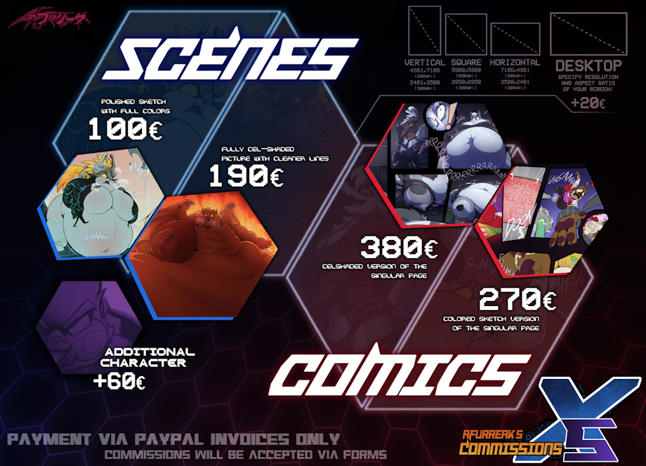 DO's Weight gain, Inflation, Transformation, Genderbend, Macro, some NSFW, Blueberry, Moderate (but not too many) Details etc... DON'T's Scat, Gore, Cub, (Violent) Popping, Superior/Superdetailed NSFW, Vore, and other extreme fetishes.
