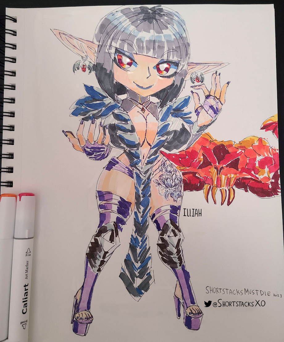 Hey again, this is a traditional art piece for once with some digital touch ups. You don't want to see all the ugly eraser marks. I bought some alcohol-based markers and wanted to test them out. You can tell I'm not too good with the colors quite yet in traditional, but I had a lot of fun doing it. This outfit is heavily based on gear from Diablo 4.