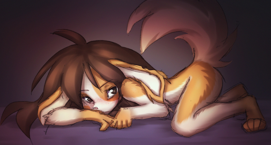 Aw, poor lonely bunny. She looks adorable, though, and I do love that big, fluffy tail and soft your coloring looks. The slight blush across her face is a nice little touch as well, and it's just a gorgeous piece all around!
