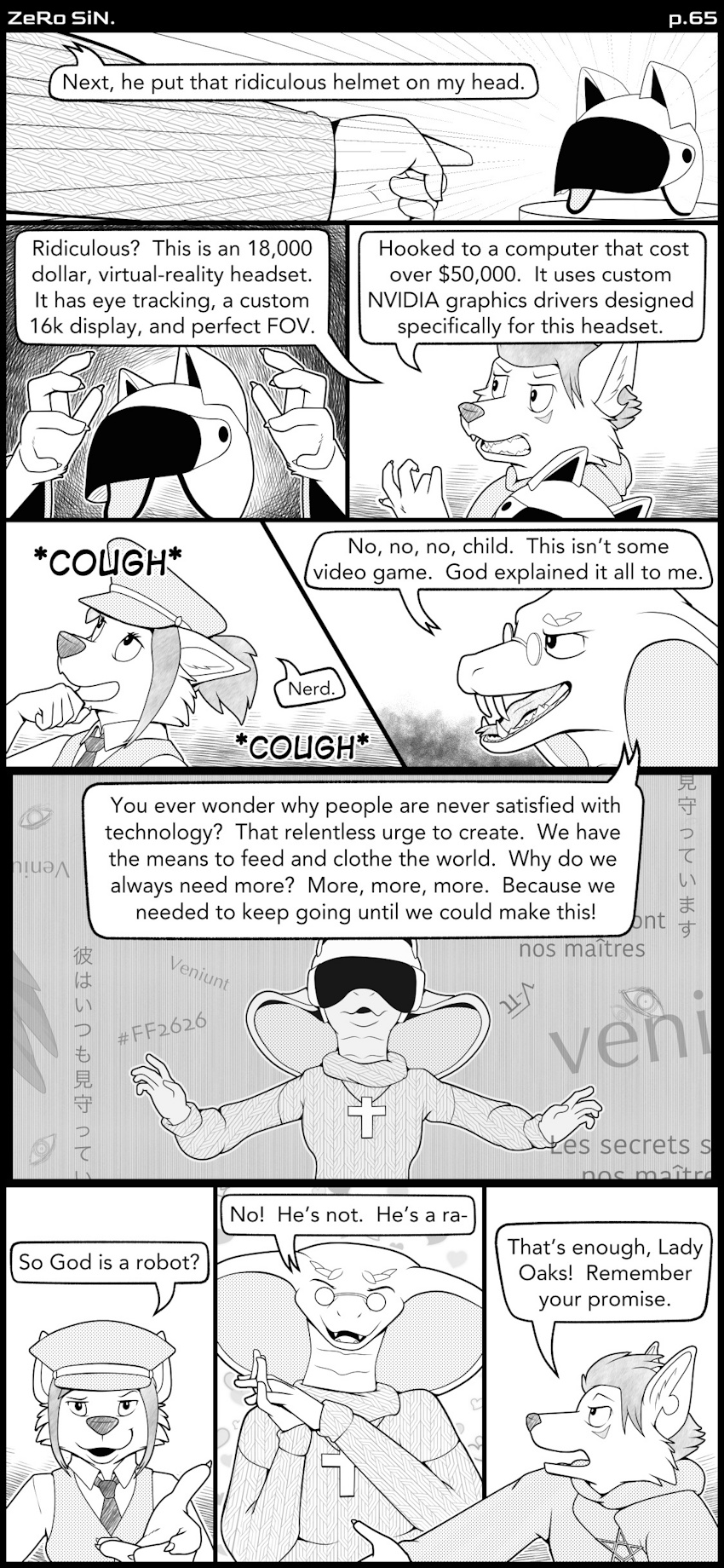 I think I got distracted with something before I could keep going yesterday—I love everything about this page—the imposing shot of Ginger staring down at the wolverine and the wolf whom is most certainly taller than her, the side by side stance putting her and Judas together to seem even more intimidating as they present a united front, that direct side shot of Ginger in the 3rd panel with her tongue sticking out, with that stern, bible-thumping no nonsense firmness that can only come from a strict upbringing, the deadly serious shadow/lightplay from a low angle in Panel 5, you can tell how absolutely dangerous this place is; Rolex's flat scowl(and half face), the fact that her next speech bubble simply leads back to that panel, all of it! I think it perfectly encapsulates the wrongness of this place and what it does to people, even the holier than thou.