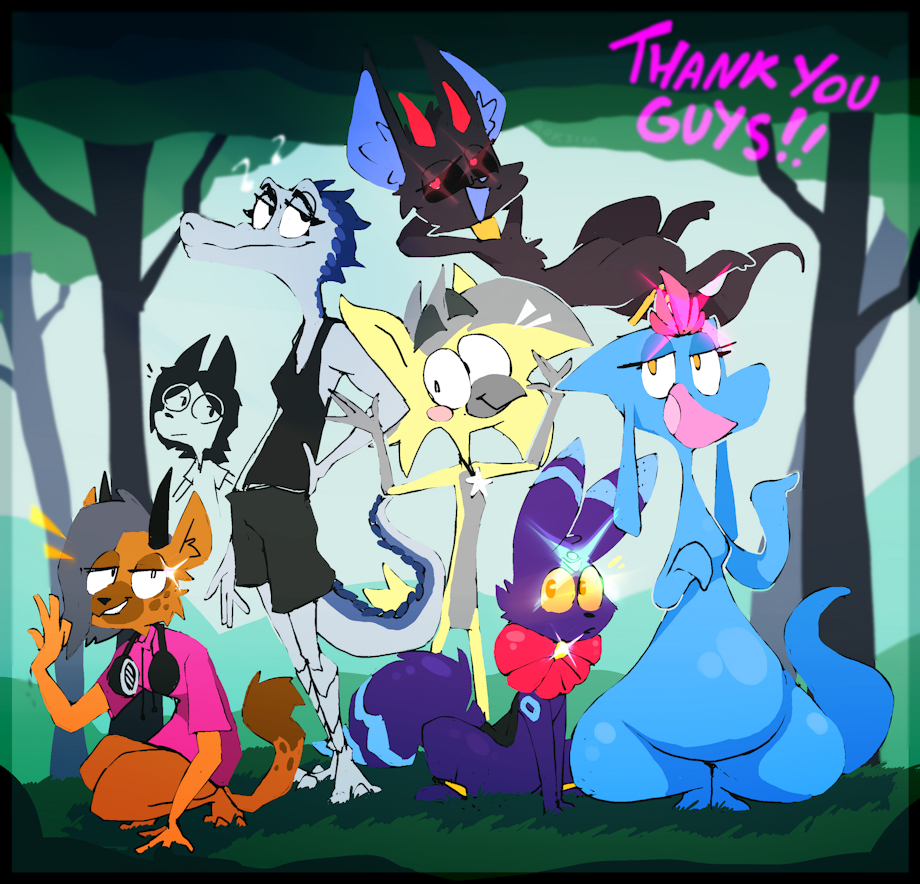Boom!!!!! Espyfur, Rabbitsona, Anojaa, Jemmyspons, Singforadrink, with SATA LIRA providing a cool song sketch to reference - those are all of the cool musicians in my game!!!! NSFW sounds were made by ButFloYeen (Twitter, open for commissions)!! This is my thank-you drawing to all of them - thank you very much you awesome guys!!!!!