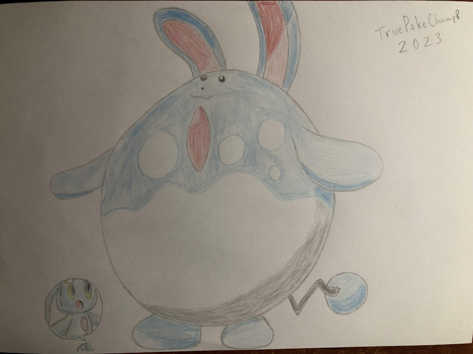 Here's amana, being the big giant prince that he is, looming over a tiny manaphy :3