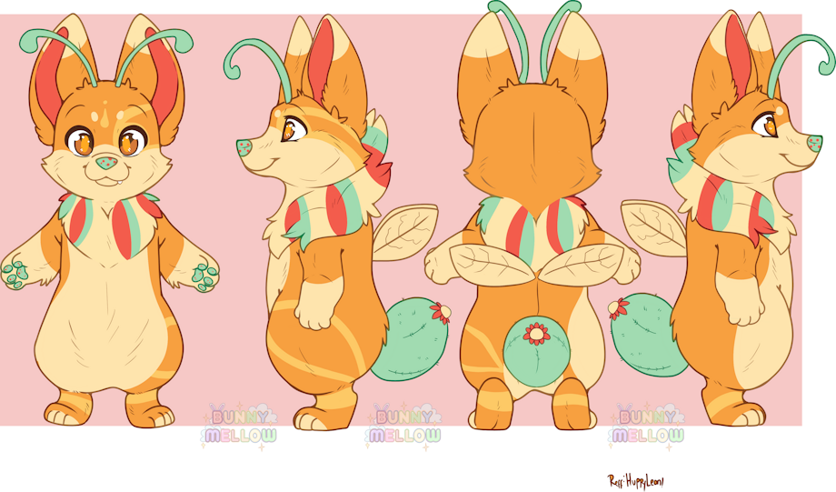 Ref shee commission for that_dumb_king on toyhouse of their cactus-corgi Finch!