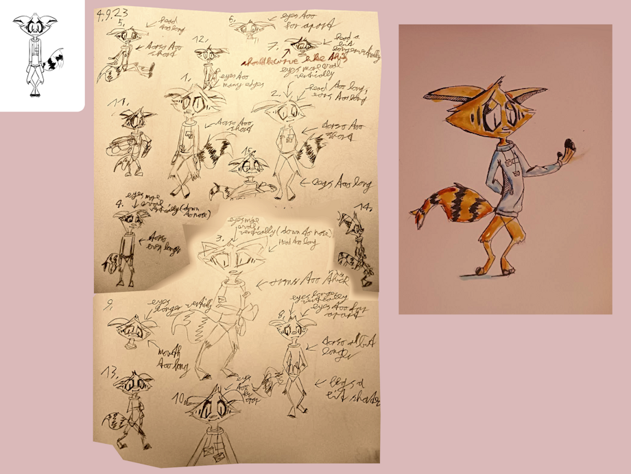 drew a raccoon in krita yesterday and today practiced a bit consistent proportions with him and also drew him with watercolors :3