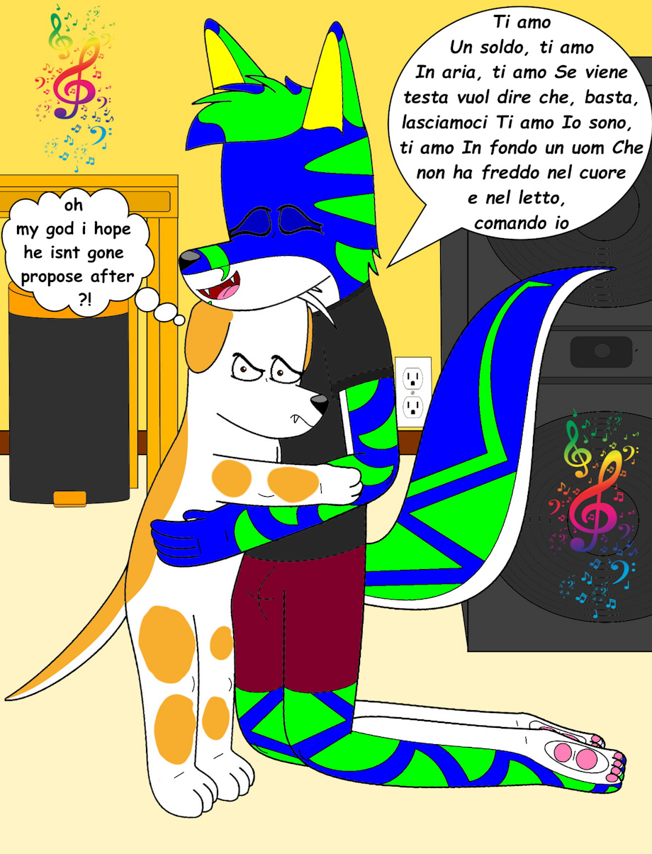 hey guys!!! so i never told anyone this.......and i feel embarressed telling this but i thought.... fuck it XDX3 in the one week i was home alone i slow danced with nestor to the song ti amo XDX3 yeah incase you wondering why that song am italian :3 so any way it was night i was bussy on some arts in my undies and shirt and i was lissening to some music and suddely my playlist hit ti amo from umberto tozzi and i got the crazy idea to slow dance with nestor so i turned on the stereo replayed the song whent down on my knees and grabbed nestor into my arms and we slow danced for awhile while i was singing along with song so i translated the song into english as well becaus even am italian i cant speak it for shit and i had no idea what the song was saying??? its glassic italian song until now i had no idea what it meant XDX3