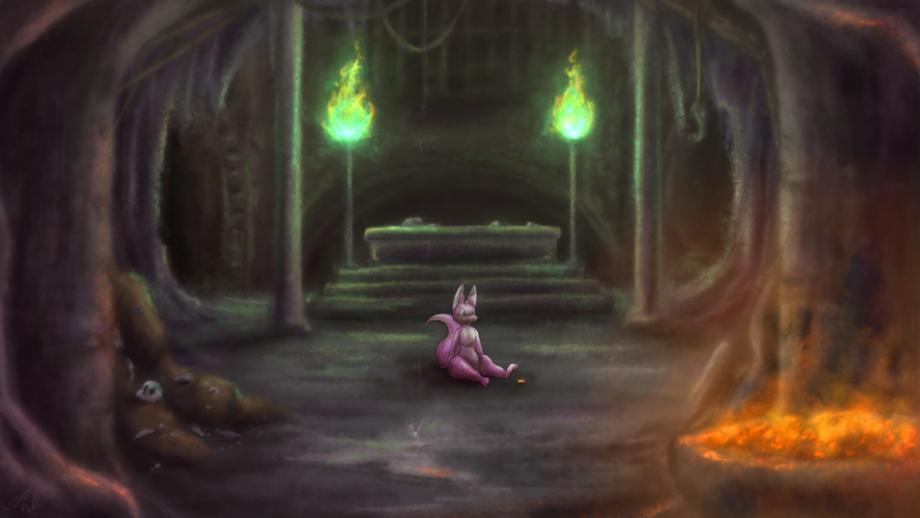 Finally, the large, stone door slides aside with a heavy groan. After so many hours slogging, digging and crawling through dark halls, your eyes have to adjust to the eternal torches illuminating the chamber. Before you rests the terrifying guardian of this place, along with a glimmering pile of loot.