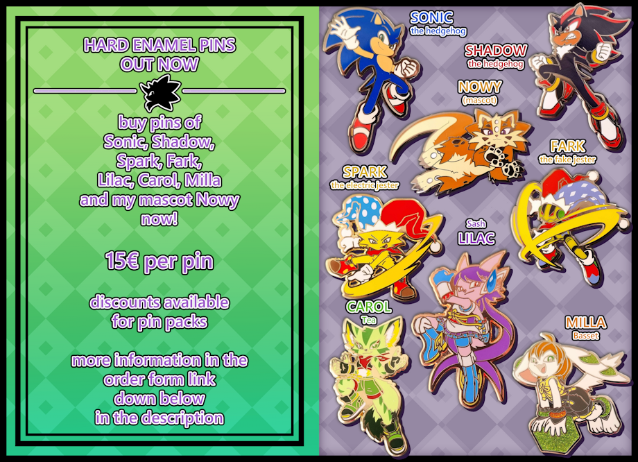 Hello! I am overjoyed to announce that my pins are finally available for purchase! Please use the google link below to order.