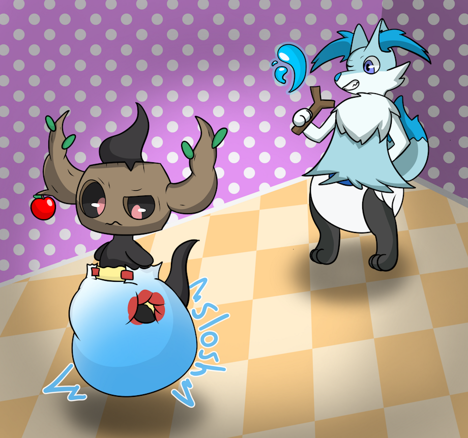 Your practically begging to get waterlogged if you aren't wearing waterproof diapers around Flux. Especially if your part grass and "looking like you need to be watered", Unfortunately for flux most ghosts are vengeful and pom is no exception.