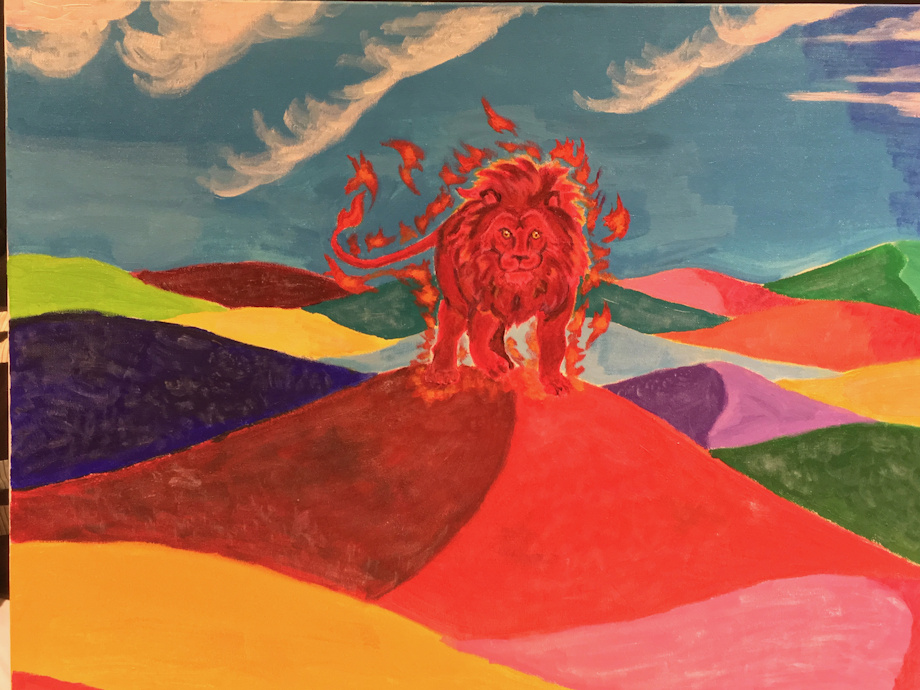 He's Grograman, the giant lion made of fire who rules over the Many Colored Desert.