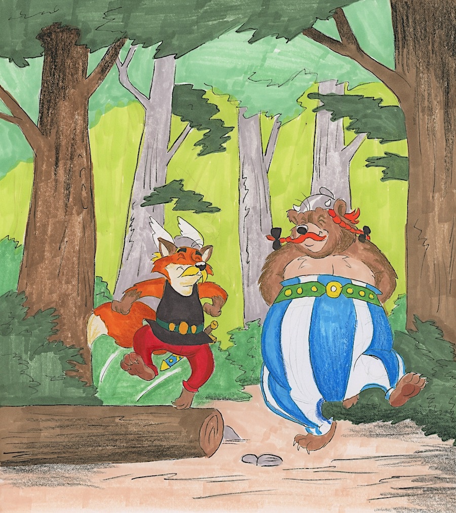 A while back I had this idea of drawing Asterix as a fox, and Obelix as a bear, which brought up a very obvious parallel that suited these characters just as well as Disney's bear and fox.