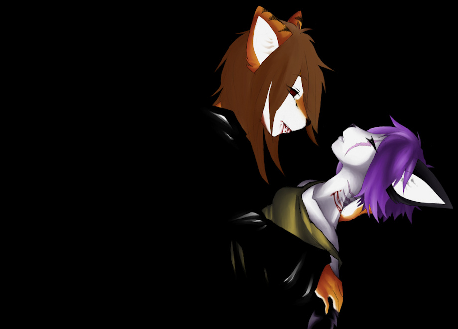 I asked Keo to make a vampy picture with Terranus. I never expected that she would let him bite her character Tigress. Since the picture came out so great, I wrote a story inspired by her awesome picture. I might upload it later.