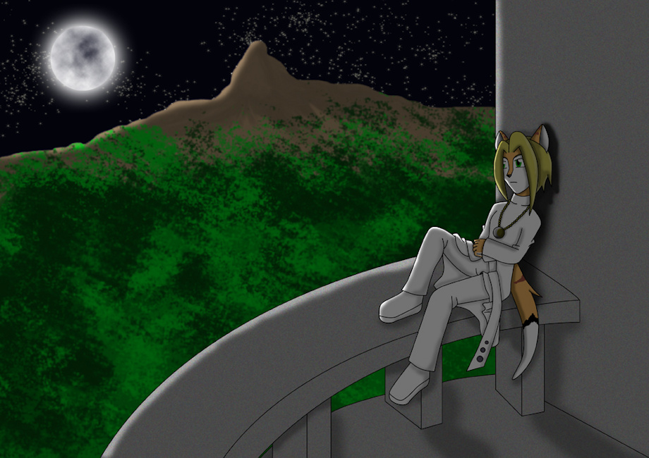 Terranus sits on the balcony to look into the distance. It seems like that he has quite some things on his mind.