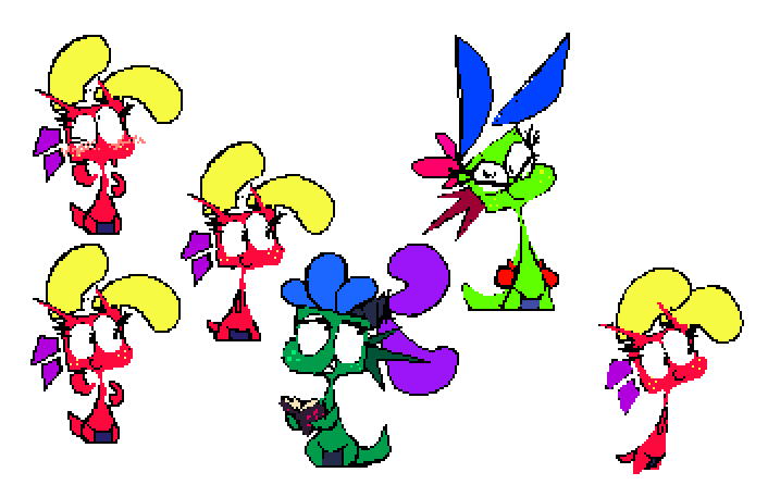 Hey folks! I did these sprites to test out a style, maybe-sorta for a simplier game... But, then I got depressed a little by thinking about the struggles of living where I am located in the world... Shudderrr!!!!.. I decided to not start making another game right now - I want to create art continuously, not in long-term projects, even if this game would be smaller than SCXXX!
