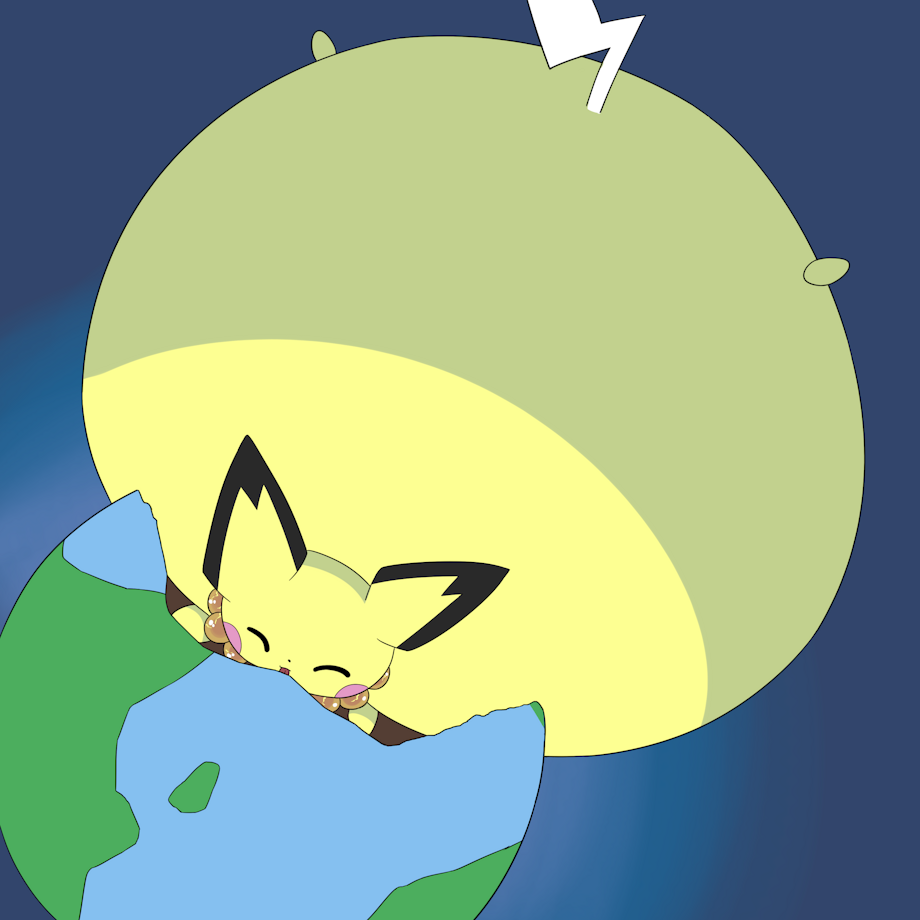 yet another follow up of This commission, of wattiz, my pichu, growning bigger then planetary scale now, who know how big this chubby pichu can be?