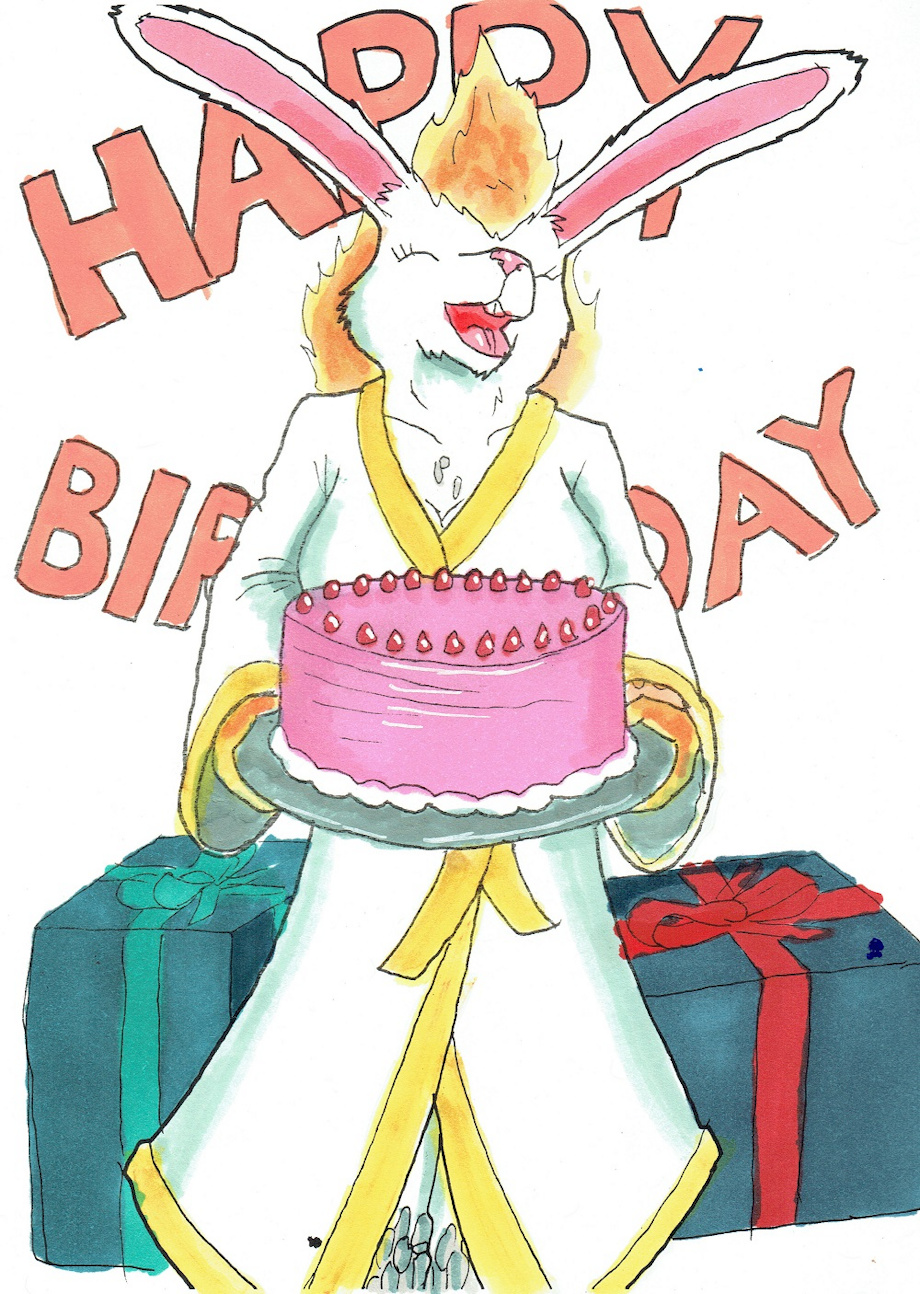 here i am another year living in the planet, my 36th time around the sun, and for today i have my other sona Mera here with a cake and a few gifts