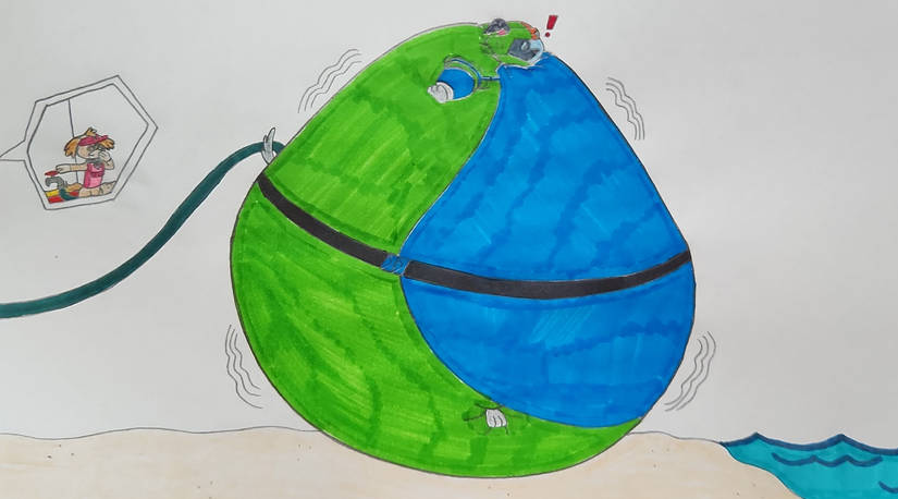 "What happens when you have a playful cockapoo pup that has an inflatable team, just so happens to be bored, and wants to have a degree of fun with each member? You get a couple various scenarios for the team itself. After letting Everest enjoy her state for a while longer still, Skye got called to help Rocky clean up the bay. Seeing him in his scuba gear, she got an idea and helped him with his hose. However, she slipped a water hose into his suit and cranked open the pressure and made his scuba suit swell with water, which as many know, he hates! Now with his suit only growing more, Skye ticks number four off her list..."