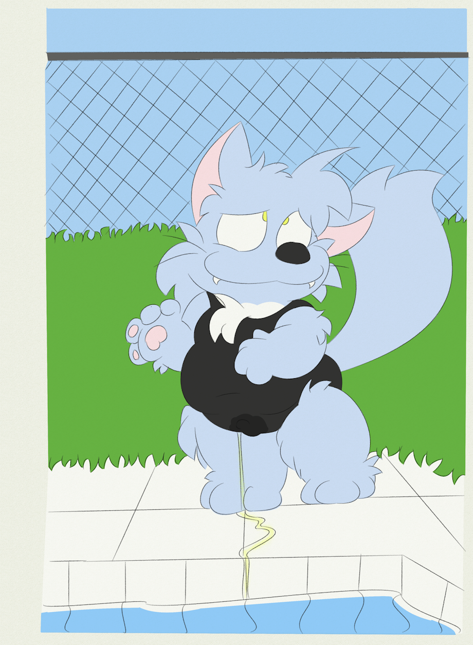 Looks like fun, kitty ^w^ Hottest way to pee in the pool <3