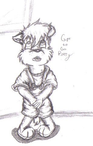 *runs holding both hands between his legs