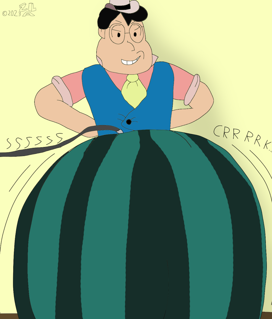 Danny Jones purchasing Pinky clothes from Rock-A-Doodle. He realized that his dark green trousers with light green stripes were not large enough, so he put on inflatable pants made of rubber before he put on Pinky's trousers again, and he inflated his inflatable pants inside Pinky's trousers.