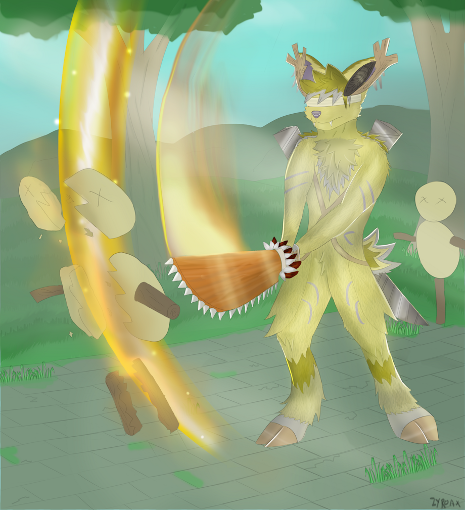 Sword deer doing sword things. Character's name is Kapoho. Commission for furaffinity user "imnotactuallyafurrybutwhatever"