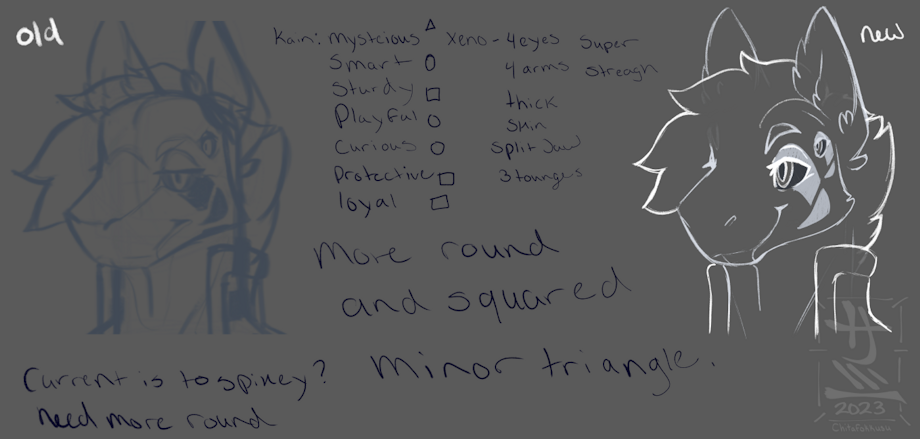 When I first drew Kain for the Nova Space Crew I was going off of the first Image I drew of him, however I felt like how he looked didn't fit the personality I wanted him to have in the Nova Space Crew. So I wrote down some words that gave a bit of his personality and drew some shapes that I felt matched it, afterwards I implemented more of those shapes in to his designs and got a look that I felt more happy with.