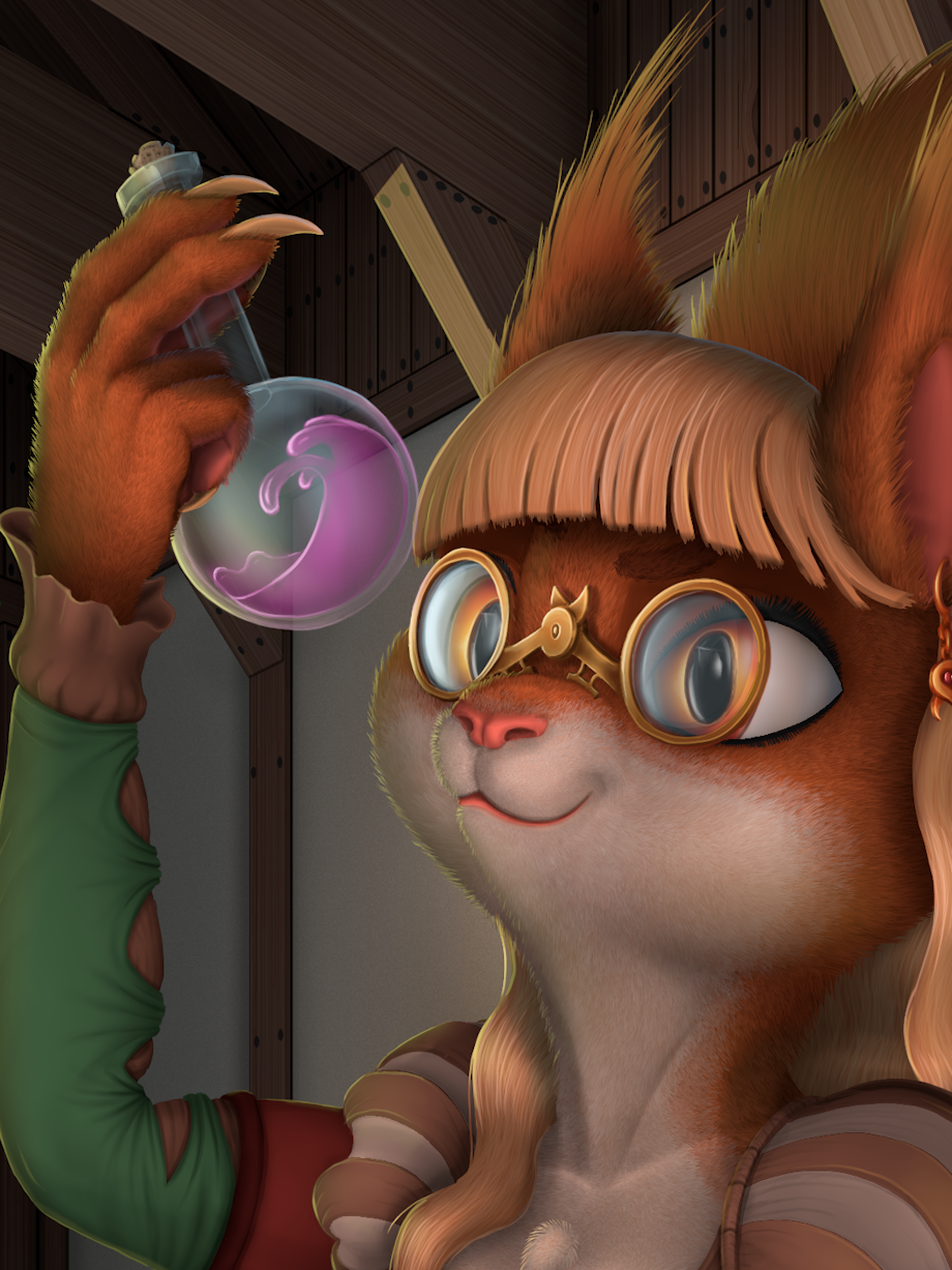 The Friendly apothecary is making medicine to treat the sick patient. This is the most ambitious artwork I've ever done. It took me over 60 hours to complete, and now my drawing arm is in pain.