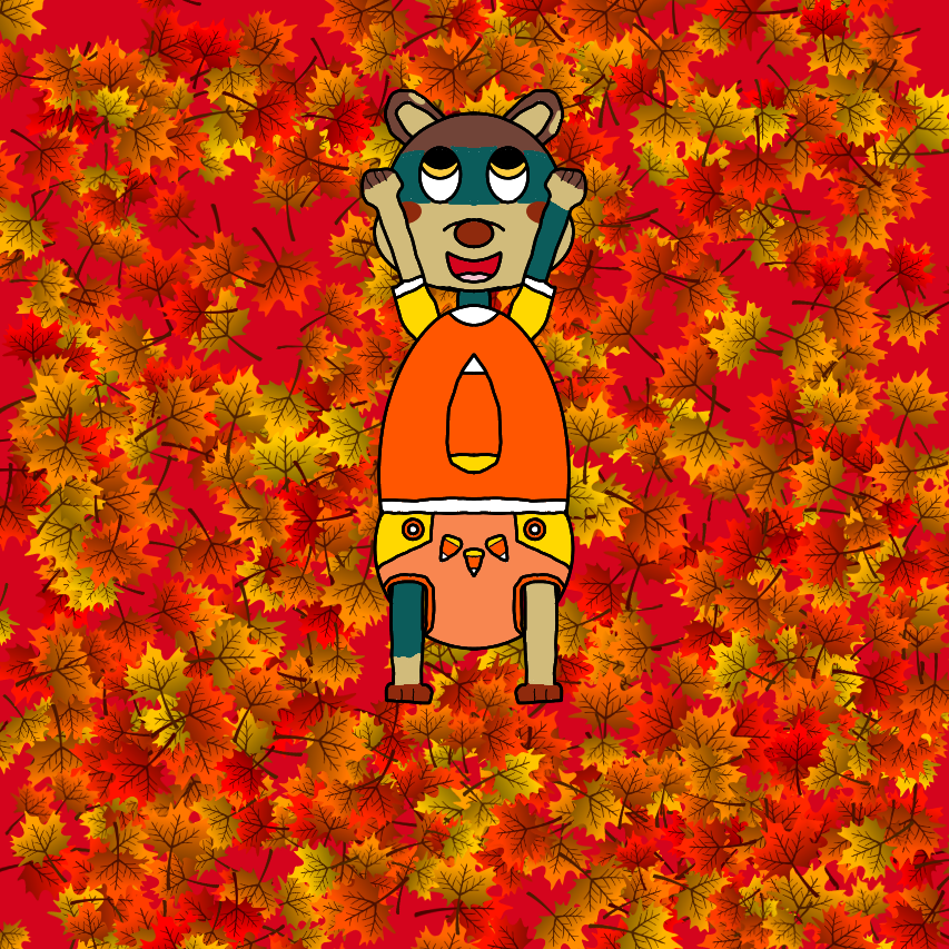 Ovi has a candycorn outfit for Halloween, and this bear wants uppies now.