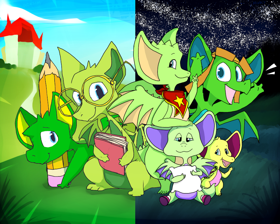 Hey folks!! Did you know?? Apparently, it's an anniversary of the Pocket Dragon Adventures first airing on TV! (not in day - in year!) Me and my friend Minky (Filbert21 on FA) have decided to celebrate it with a collab drawing, and, here it is folks!!!! The whole crew is assembled!!
