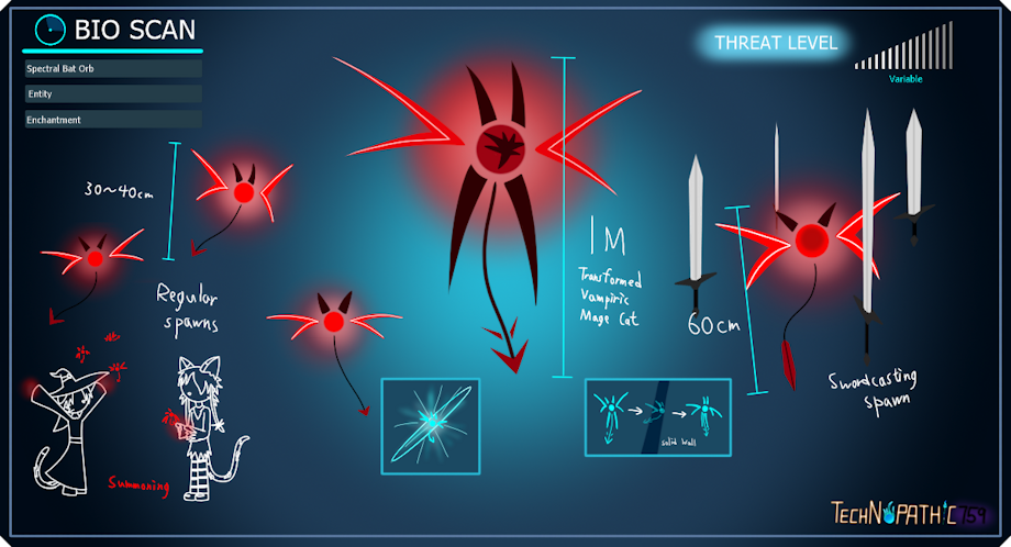 By default, the Cauldronoderm summons homing magic energy to attack, it also have a passive effect of boosting all nearby magic users. Being part jellyfish, it's also armed with 4 retractable long tentacles that can sting and deliver a venom, which only paralyzes and knocks it's target out for a few moments. However, it's summoner can upgrade it with some spells: Like purple magical shield, or longer reach tentacles and stronger venom etc.